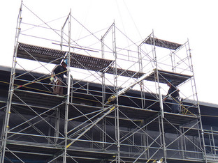 鳶工事を行う当社では、外壁など建物の外観を施工する際に欠かせない足場工事を行っており、各職人が安心して作業に取り組める作業環境をつくっています。足場工事の際は高所での作業となりますが、安全を第一に作業しておりますのでご安心ください。